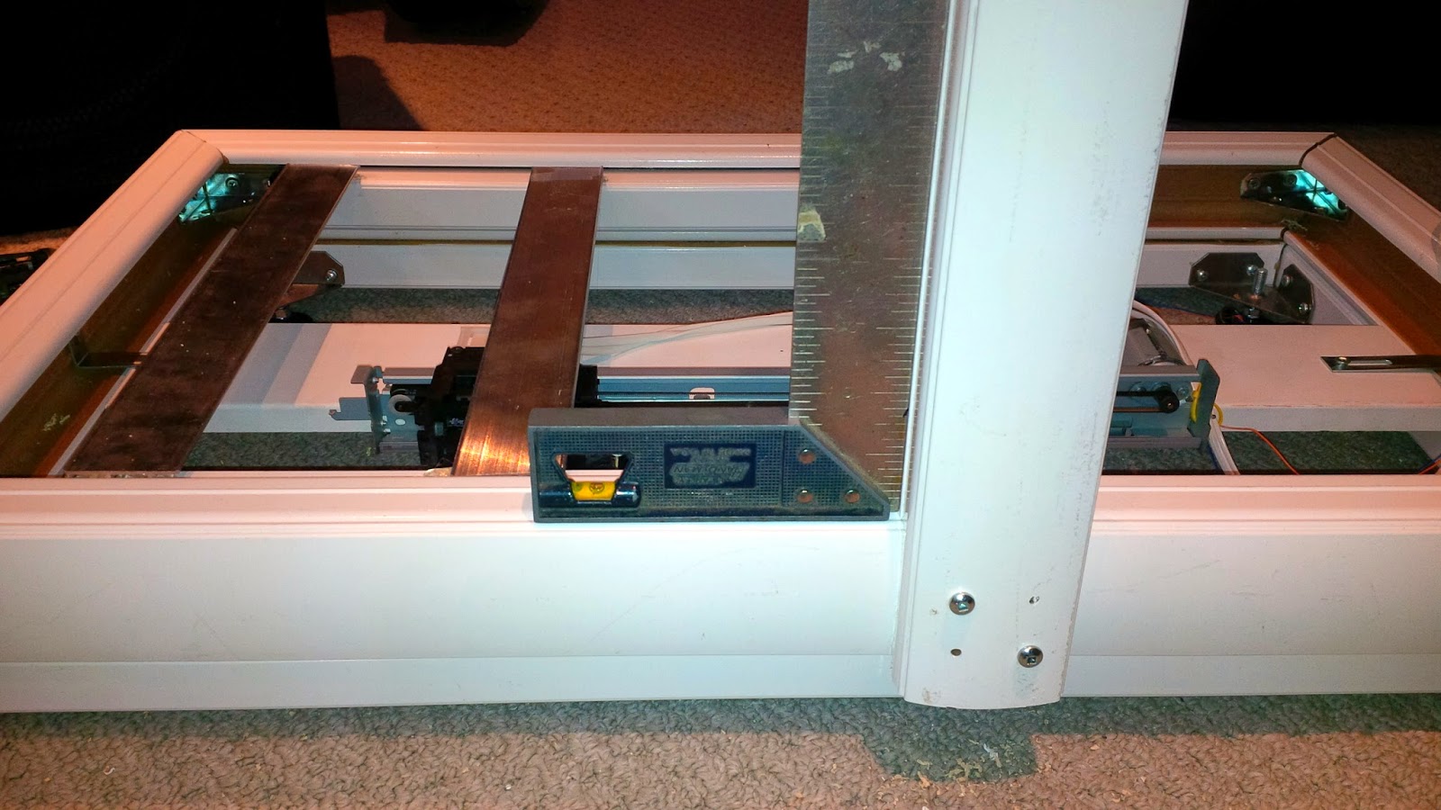 As I mentioned in my previous posting, the frame for this was scavenged from exterior railing extrusions.