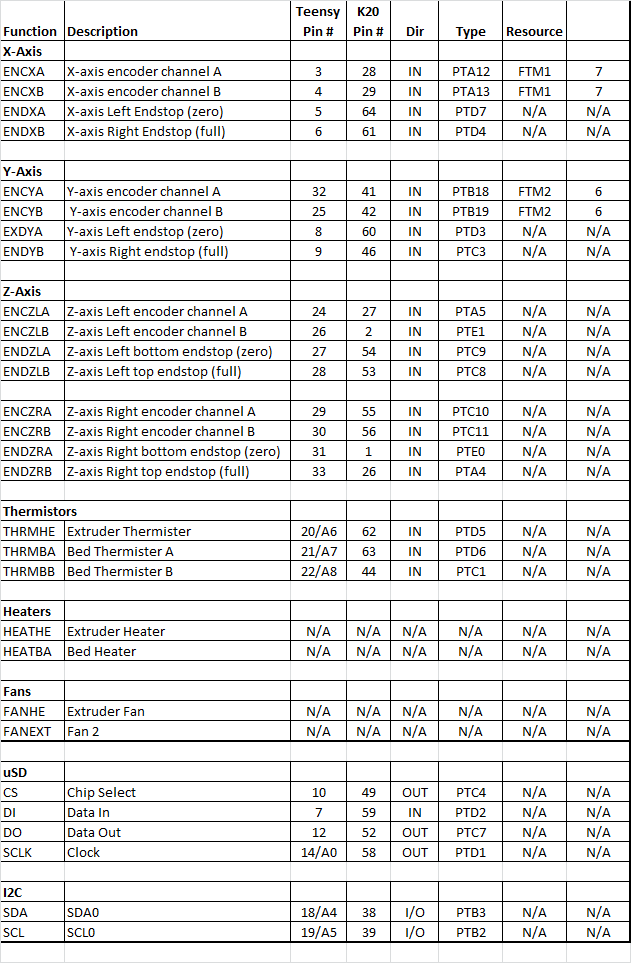 As I re-engage my3D Repscrap printer project, I have decided to replace the two 8bit AVR based Arduino pro minis running at 16Mhz with a single Teensy 3.1, 32bit ARM core M0 based board running at 96Mhz. The Teensy is significantly faster, more powerful, and still only $20USD.I was considerably influenced to change my direction based on this incredibly detailed Blog over at Freescale. Nikki Verriddagari, a Freescale developer, managed to replace the typical Arduino Mega2560 seen in most Reprap style printers with the Teensy 3.1 inside of 3-4 weeks, as a side project.