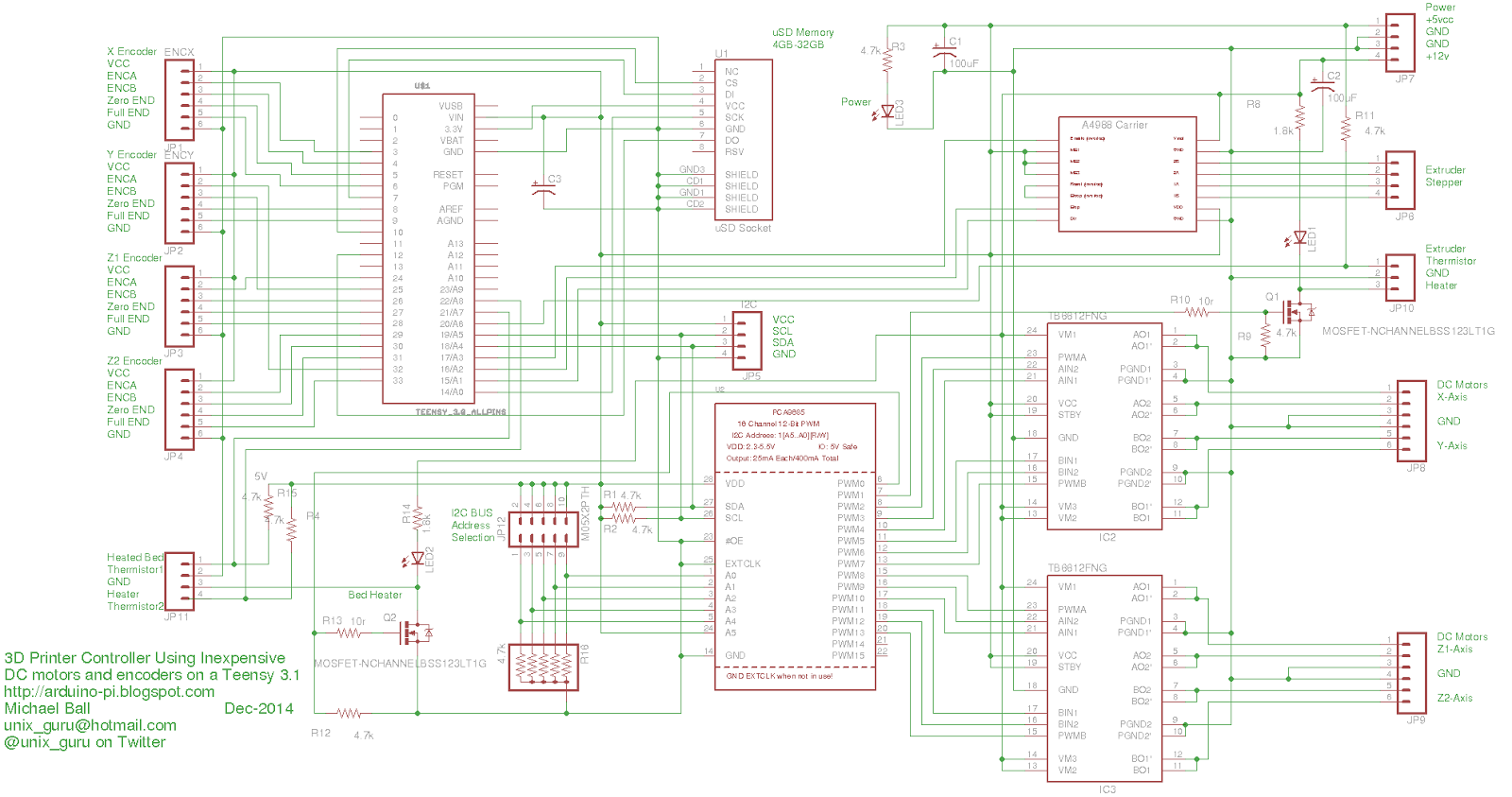 | Teensy 3.1 Based 3D printer with DC motor/Quad Encoders |